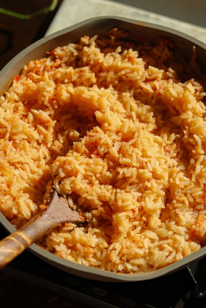 Authentic Mexican red rice recipe that is fluffly, flavorful, and authentic! Made with simple, fresh ingredients and is vegan and vegetarian friendly.