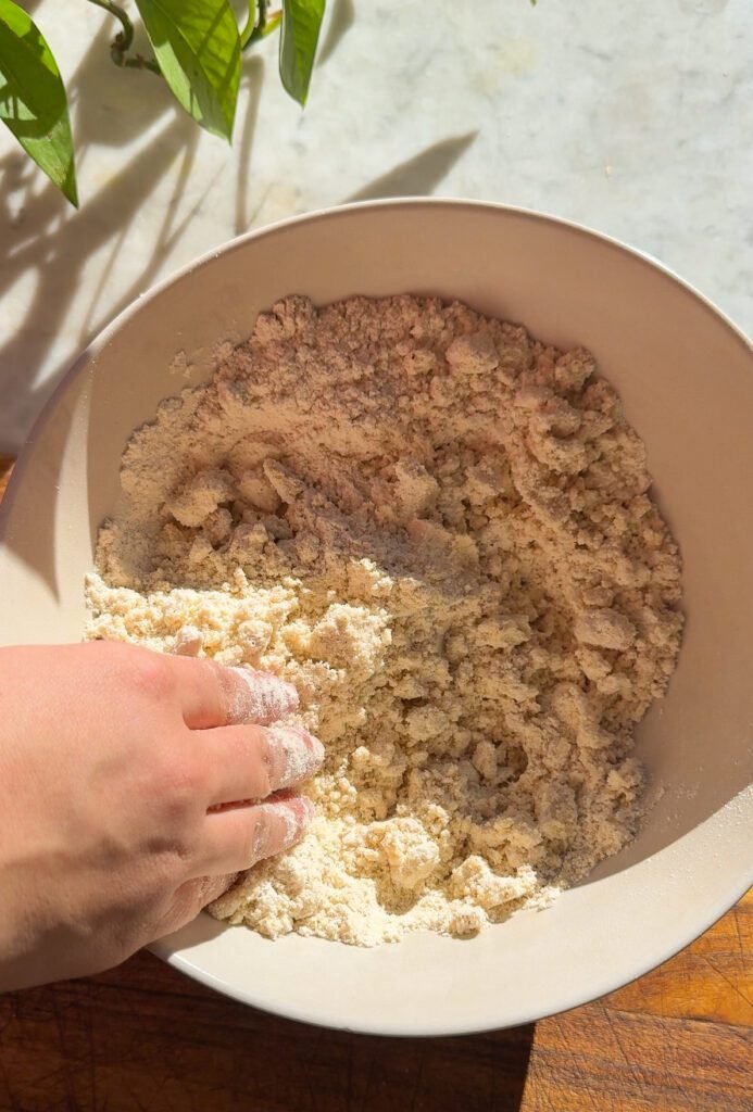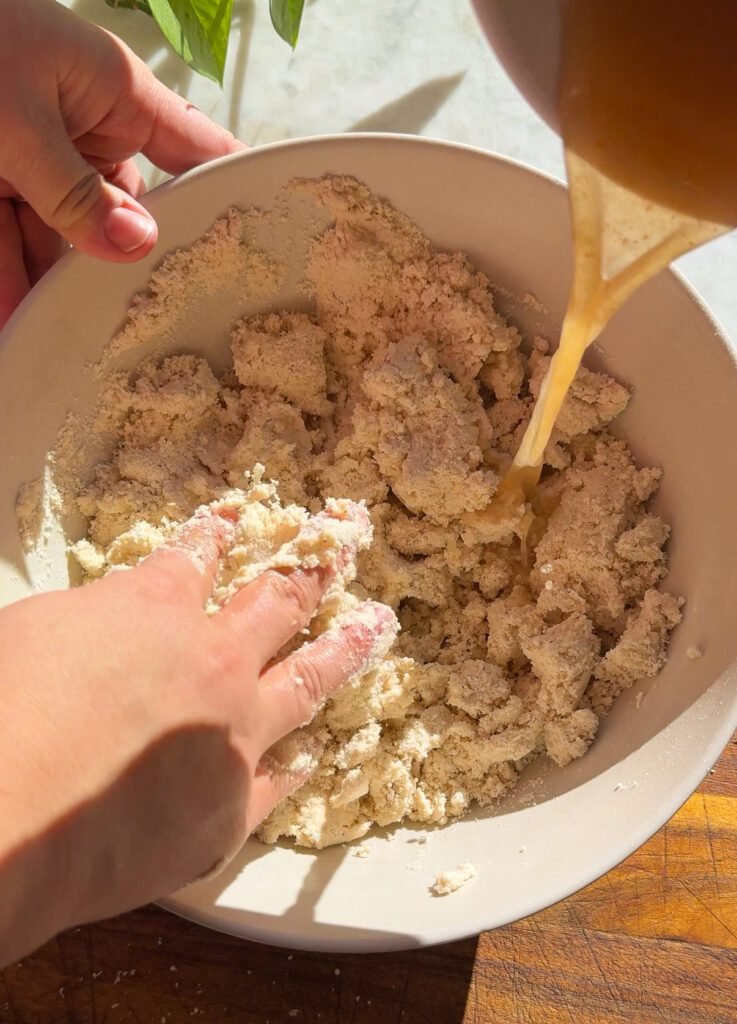 Use your hands to mix it with the dry masa until it looks sandy. This distributes fat evenly and mimics the aeration effect of whipped lard. That’s why we add the oil before adding the broth or anything else! - Add warm broth, not cold